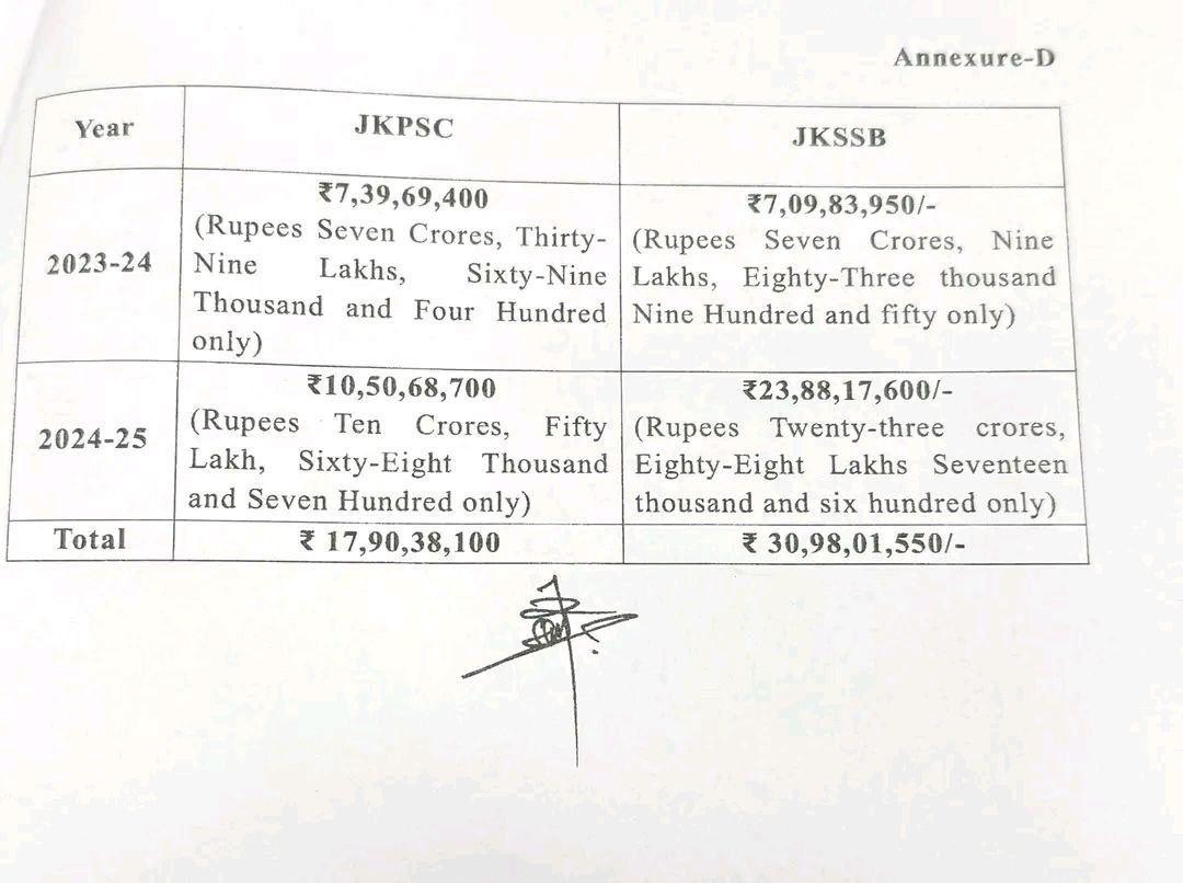 JKPSC collected approximately ₹7.39 crore